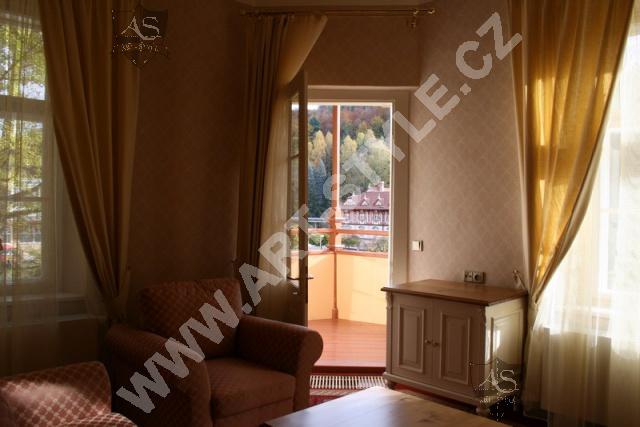 The Alpine Rose Villa, with a beautiful view of the park, is located in the quiet center of spa town Luhačovice, near the colonnade and mineral springs. Art-Style Co. completely furnished the villa, which contains two double suites (separate bedroom and living room with an extra bed), 4 studios for 2 persons (bedroom with kitchen), and 2 studios for 4 people (two bedrooms).