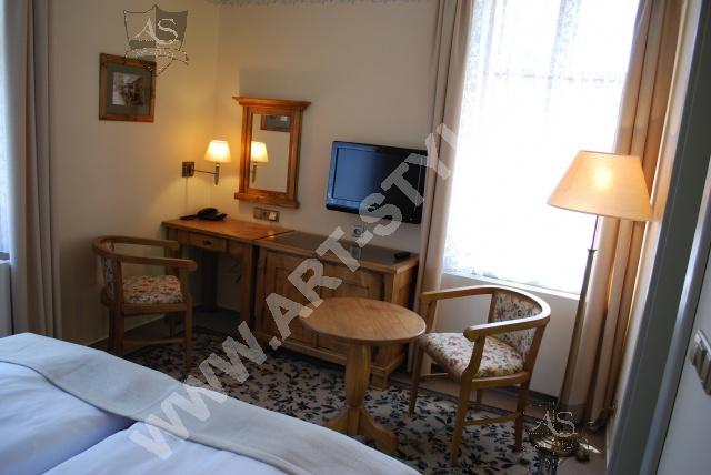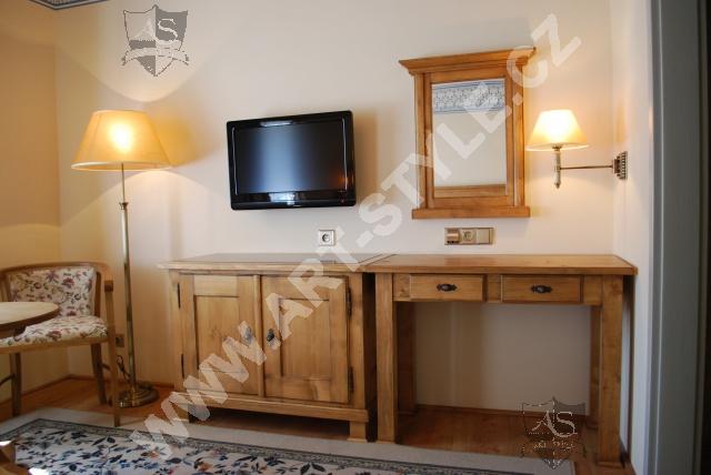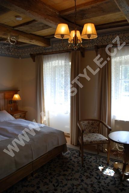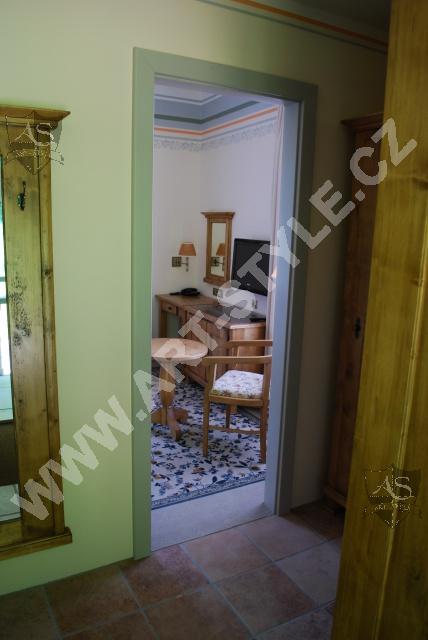 After complete furnishing of the Villa Alpine Rose in the spa town of Luhačovice, we were asked to furnish the Villa Pod Lipamni after it had completed a reconstruction and renovation. The Villa Pod Lipami is located in the in the middle of the park in the quiet center of the mineral springs town of Luhačovice. The villa contains 8 rooms, and the furniture surfaces were finished in a patina varnish.