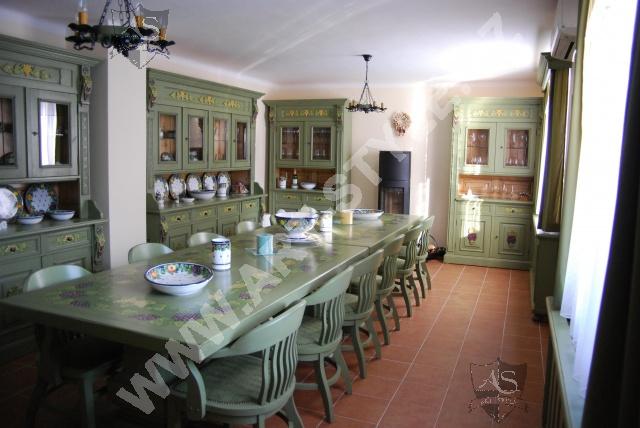 ART -STYLE Co. equipped the private stylish wine bar in Luhačovice, starting with the furniture, lighting, decorative pictures, handmade ceramics from Italy, coverings over the heating, to the smallest interior design elements. The wine bar is decorated in a wine theme, so special carvings of grapes and grape leaves were carved on the sideboards as well as other wine motifs, found throughout the interior.